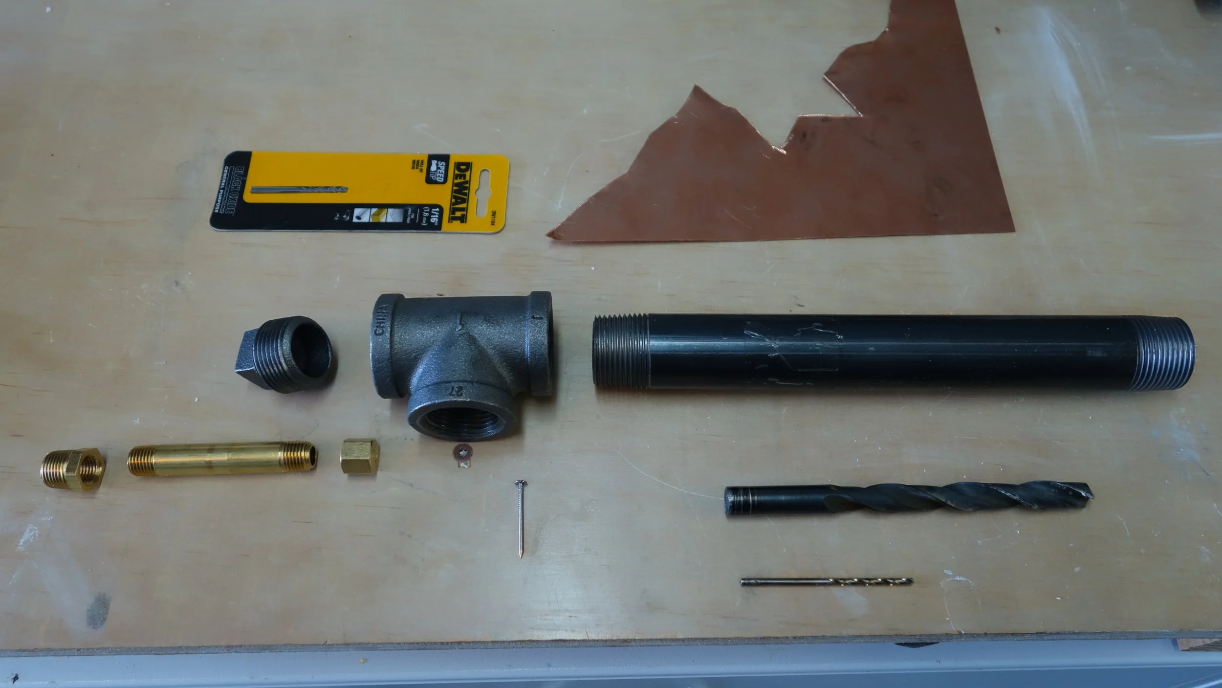 The nail, copper sheet, washer, and 1/8" drill bit were for use making an inlet cover. WIth a 1/16th drill bit that ended up not being necessary since the torch functions best with the hole almost fully open.