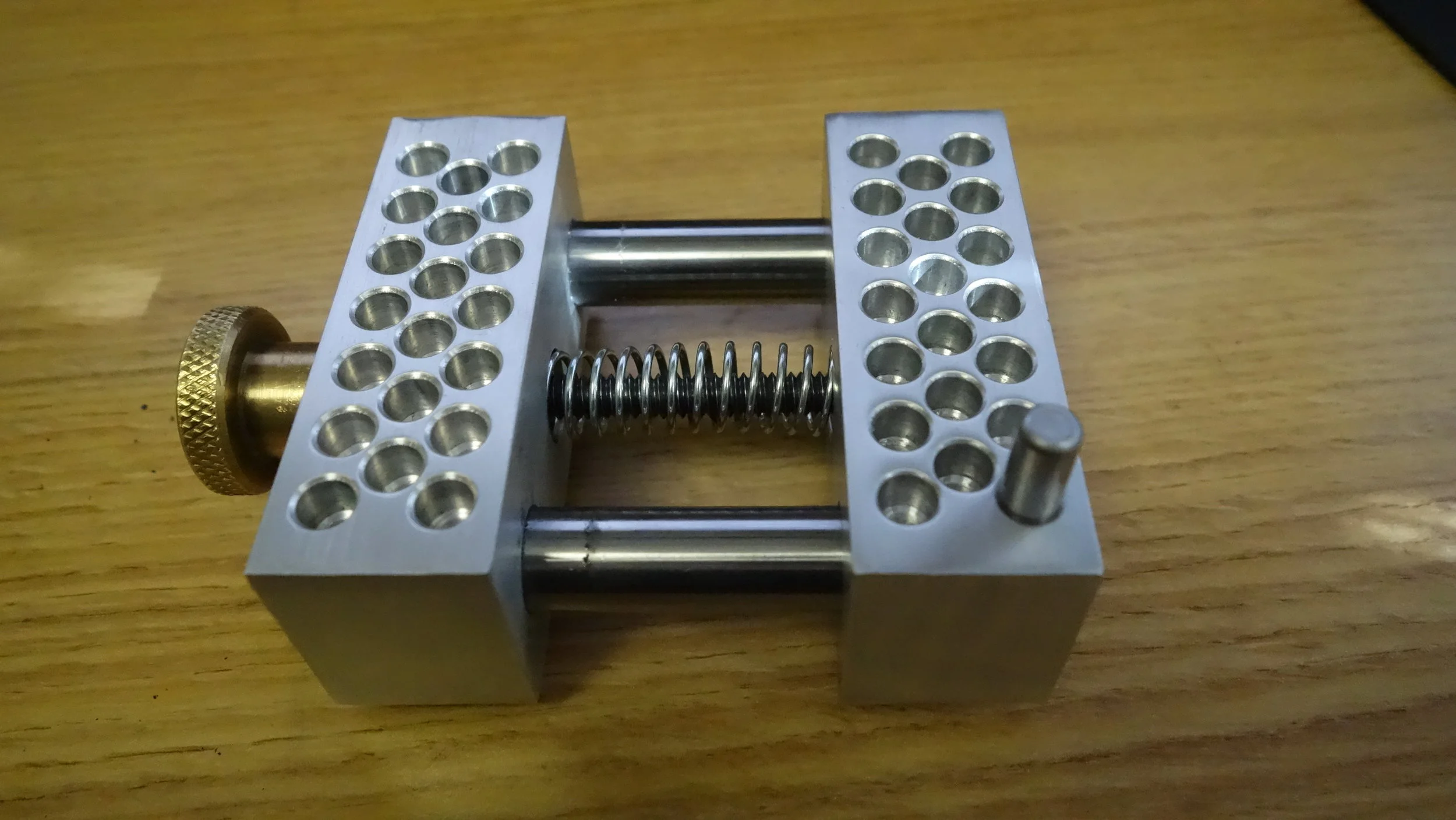 This started as one of my first CNC projects, although it took me a bit to complete. It is a PCB/Jewelry vise I plan to use for some future projects. I made the two aluminum pieces and came up with the design, but purchased the motion hardware on Mcmaster Carr.